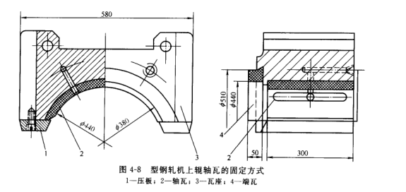 三輥型鋼軋機的中輥是固定得,中輥調(diào)整只是按軸承的磨損程度調(diào)軸承的上瓦座,保證輥頸與軸承,軸承襯之間的合適間隙。由于這一調(diào)整量較小,常用斜楔機構(gòu)。典型結(jié)構(gòu)用斜楔壓緊“H”形瓦座的方式,這種結(jié)構(gòu)換輥方便,使用較廣。