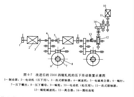 軋機(jī)的壓下裝置采用雙電機(jī)驅(qū)動的原因是; 電動機(jī)飛輪力矩小,相應(yīng)的啟動、制動時(shí)間短,故可縮短壓下調(diào)整時(shí)間。